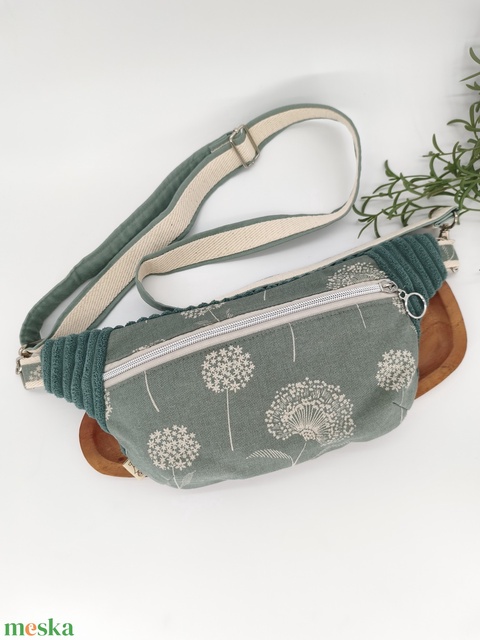 Klasszik övtásak - Övtáska, crossby, testtáska zsálya pitypangok, kord bútorvászon