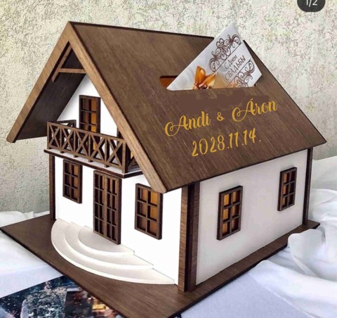Nászajándék gyűjtő ház – esküvői pénzgyűjtő házikó A nászajándék gyűjtő ház egy praktikus és látványos esküvői dekoráció, amely lehetővé teszi, hogy a vendégek elegánsan elhelyezzék a pénzajándékokat és jókívánságokat. Az esküvőkön ma már gyakori, hogy az ifjú pár borítékban kap pénzt, ezért egy esküvői pénzgyűjtő házikó segít rendszerezetten és biztonságosan összegyűjteni az ajándékokat. A mérete 32*25*23 Nyilás mérete 16x1 cm Stílusos Nászajándék Gyűjtő Házikó Esküvőkre Ez az elegáns, házikó alakú nászajándék gyűjtő doboz tökéletes megoldás, hogy a vendégek ajándékait és jókívánságait egy helyen, stílusosan tárolja. A természetes fa alapanyagból készült gyűjtődoboz letisztult, romantikus dizájnja bármely esküvői helyszínt feldob, és különleges díszként szolgál, amely illeszkedik bármilyen dekorációs stílushoz. Ez az egyedi fa nászajándék gyűjtő ház névre szóló gravírozással készül, így a pár neve és az esküvő dátuma is rákerülhet. A személyre szabott dekoráció különleges hangulatot ad az esküvőnek, és később is szép emlék marad a nagy napról. A házikó formájú esküvői pénzgyűjtő doboz nemcsak praktikus, hanem dekoratív eleme is lehet a helyszínnek. A vendégek a felső nyíláson keresztül dobhatják be a borítékokat, miközben a házikó romantikus megjelenése tökéletesen illik az esküvői dekorációhoz. Miért jó választás esküvőre? egyedi, névre szóló esküvői dekoráció praktikus megoldás pénz és boríték gyűjtésére fa anyagból készült, természetes megjelenés maradandó emlék az esküvő után romantikus házikó design esküvői pénzgyűjtő ház nászajándék gyűjtő doboz borítékgyűjtő doboz esküvőre egyedi esküvői dekoráció esküvői pénzgyűjtő házikó Tökéletes Ajándék Esküvőkre Ez a nászajándék gyűjtő házikó egyedi és praktikus választás minden esküvőre, amely stílusosan tárolja a vendégek ajándékait és jókívánságait. Ajándékozza meg az ifjú párt egy olyan darabbal, amely az esküvő után is különleges emlék marad.