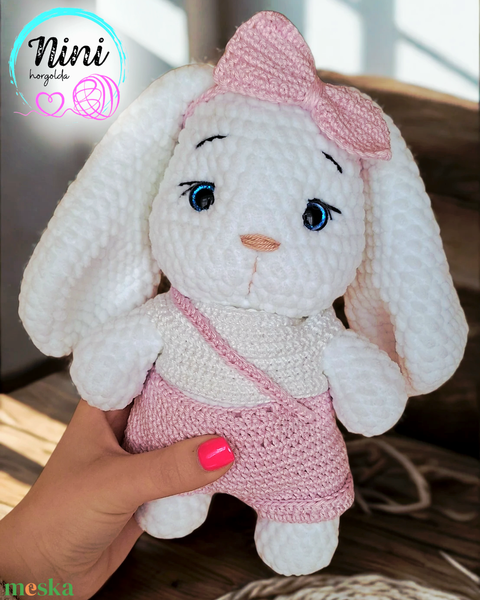 Horgolt nyuszi - masnival, ruhában