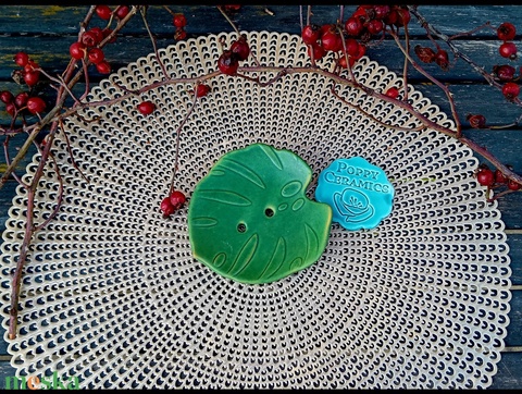 Levél alakú kerámia szappantartó, matt zöld