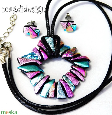 Csillogó ezüst-rózsaszín dichroic üvegékszer szett nyaklánc fülbevaló