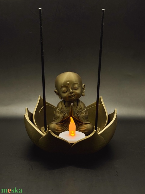 Zen Buddha füstölőtartó LED mécses hellyel – meditációs dekor