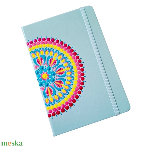 Pontfestett mandalás jegyzetfüzet vonalas, menta - kék, rózsaszín