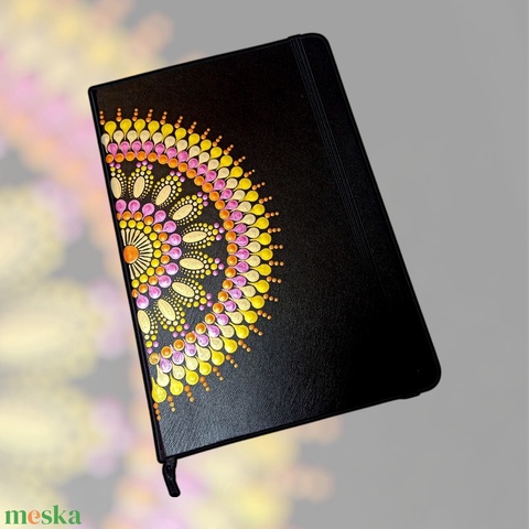 Pontfestett mandalás jegyzetfüzet vonalas, fekete - sárga, pink