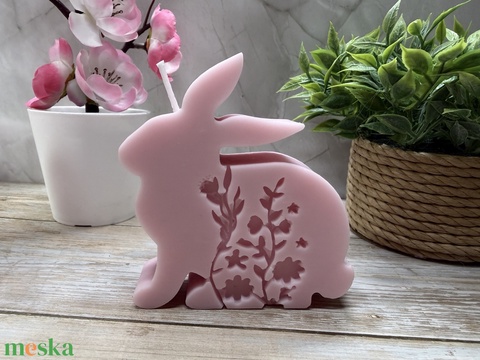 Tavaszi nyuszi gyertya – virágmintás húsvéti dekoráció