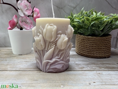 Kézműves tulipánmintás díszgyertya – lila átmenetes színben