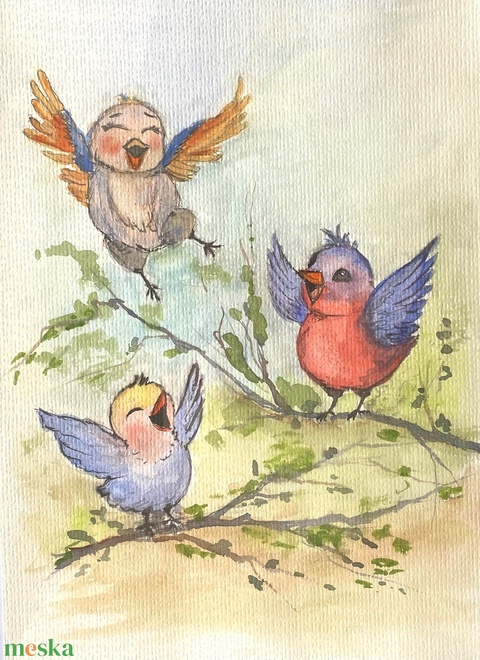 Vidám madárkák festmény