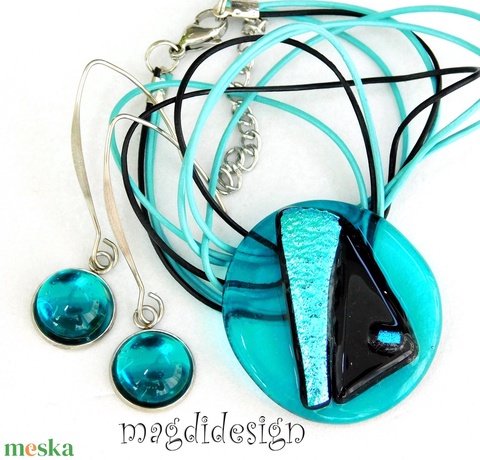 Türkiz-fekete színjáték dichroic üvegékszer szett lógó fülbevaló