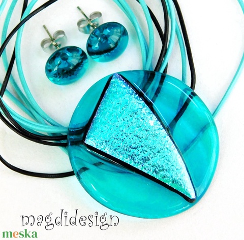 Türkizes színjáték dichroic üvegékszer szett nyaklánc fülbevaló