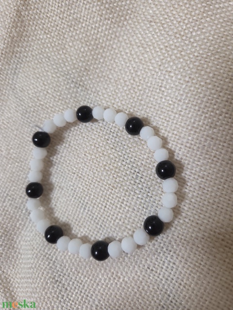 Fehér és fekete gyöngyből készült karkötő