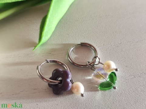 Tavaszi virágos nemesacél fülbevaló AAA gyöngyökkel!