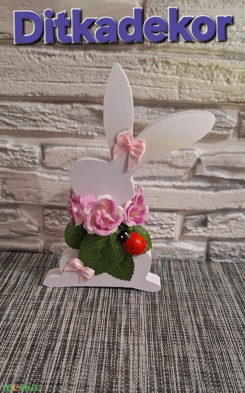 Katicás-Rózsaszín Fa Nyuszi – Kézzel Készült Húsvéti Dekoráció