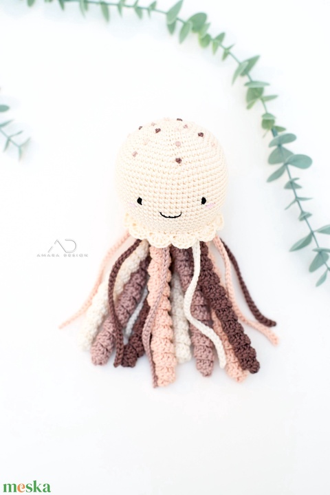 Horgolt NAGY polip hímzett pötyökkel - krém/barna