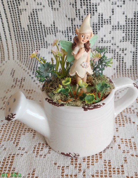 Tavasztündér kerámia locsolókannában - asztaldísz