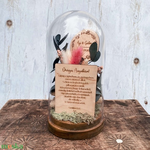 Esküvői Szülőköszöntő Ajándék – üvegbúra száraz virágokkal