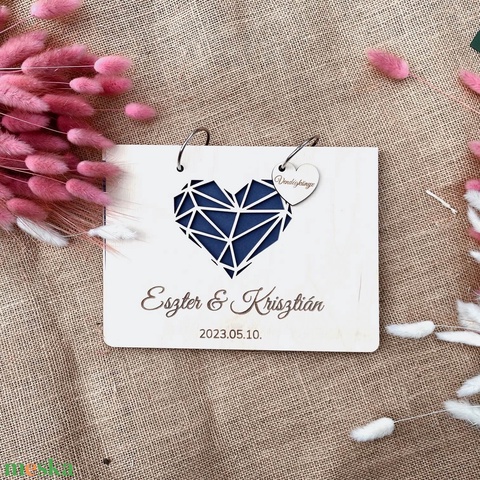 Esküvői vendégkönyv – Fa borítós natúr – geometrikus