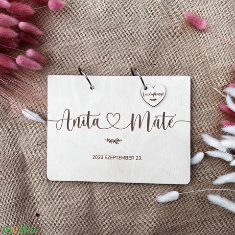 Esküvői vendégkönyv – Fa borítós natúr – szerelem