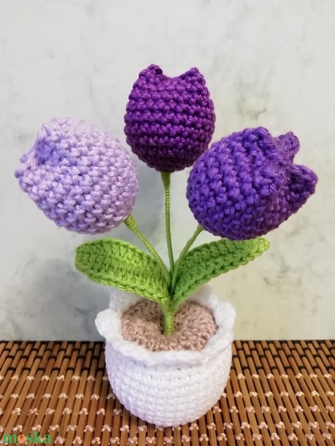 Horgolt tulipáncsokor kaspóban
