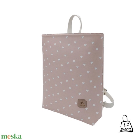 A finom rózsaszín alapon apró fehér szívecskékkel díszített design nőies és könnyed megjelenést ad a táskának.