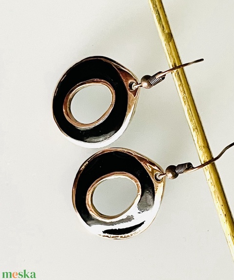 Fekete zománcozott bronz modern fülbevaló