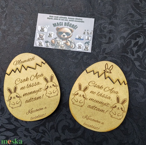 Fa pénzátadó húsvéti tojás – locsolkodási ajándék nyuszis mintával