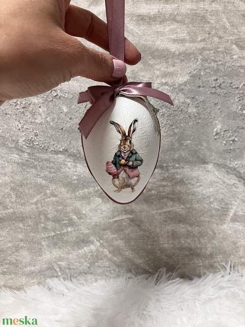 Húsvéti tojás nyuszis - rózsaszín szalaggal
