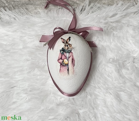 Húsvéti tojás nyuszis - rózsaszín szalaggal
