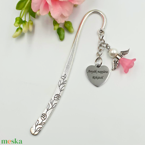 Gravírozott könyvjelző egyedi felirattal, rózsaszín angyalkával
