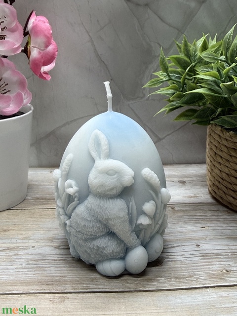 Nyuszi tojás gyertya - kék színben