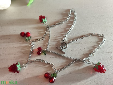 Piros gyümölcsös nemesacél nyaklánc – nyári örömök láncon! 🌸🍒