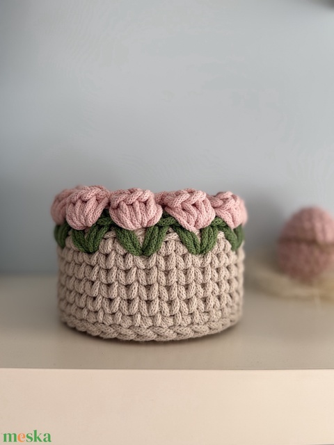 Horgolt tulipános kosár