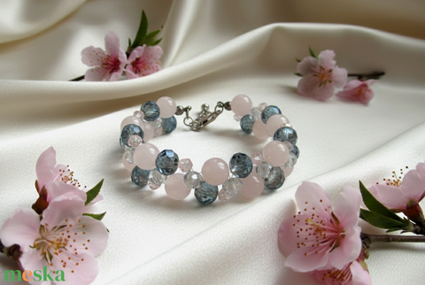 - Anyag/Összetevő valódi rózsakvarc, csiszolt üvegkristályok, ékszerdamilra, rozsdamentes acél kapocs