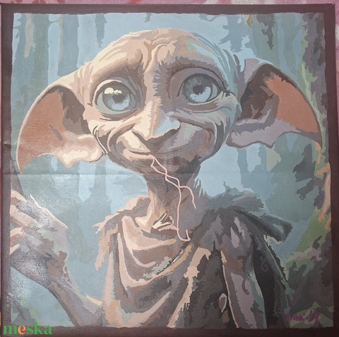 Harry Potterből jól ismert házimanó Doby.Nekem személy szerint ő az egyik kedvencem ,szintén saját magam festettem! Egy rajongó gyűjtemények ékes darabja lehet !A kép mérete 40×40cm