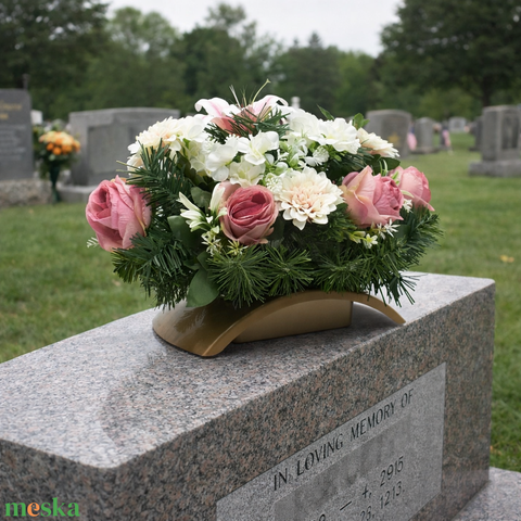 Mályva rózsás sírdísz – elegáns kegyeleti dekoráció