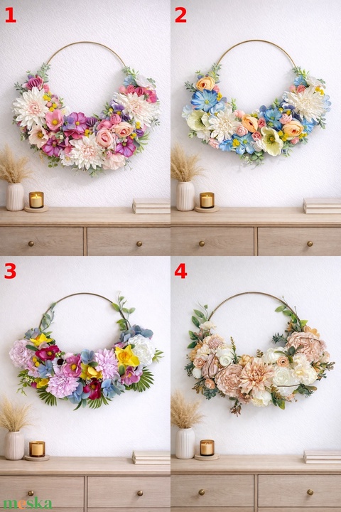 - Anyag/Összetevő művirág, zöldlevél, boglárka, pipacs, fém karika, pillangóvirág, rózsa