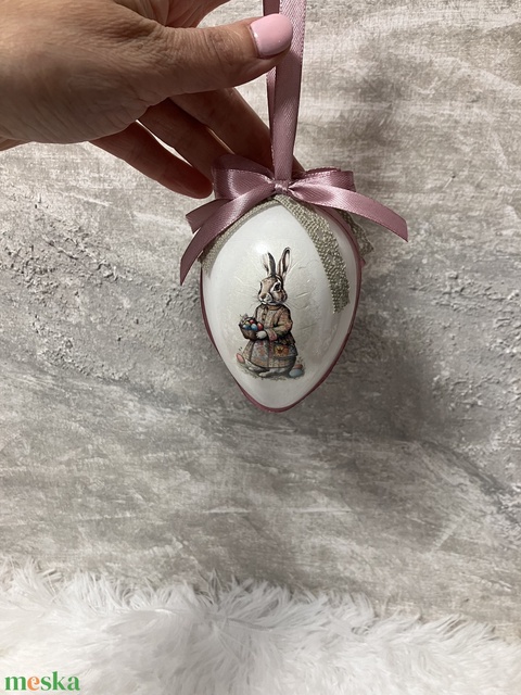 Húsvéti tojás nyuszis - rózsaszín szalaggal