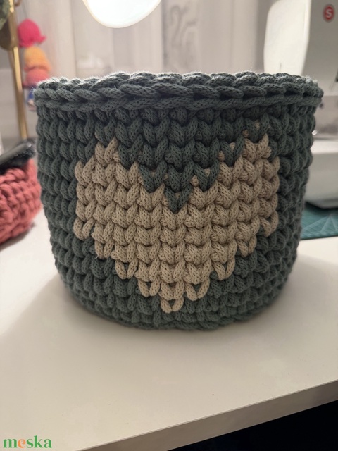 Horgolt tároló szív mintával