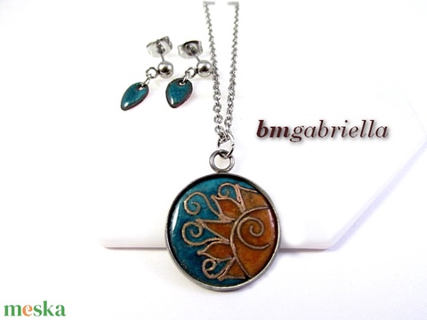 Kelő nap - tűzzománc ékszerszett, orvosi fém nyaklánc, bedugós fülbevaló