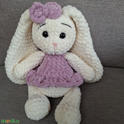 Hosszú fülű, krém színű horgolt nyuszilány