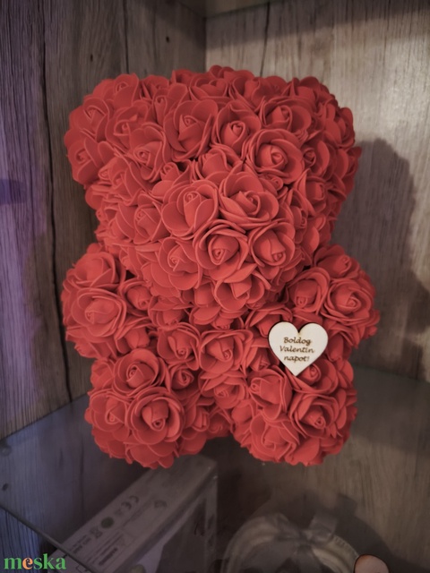 Szappanrózsából készült kb 25 cm magas maci díszdobozban.