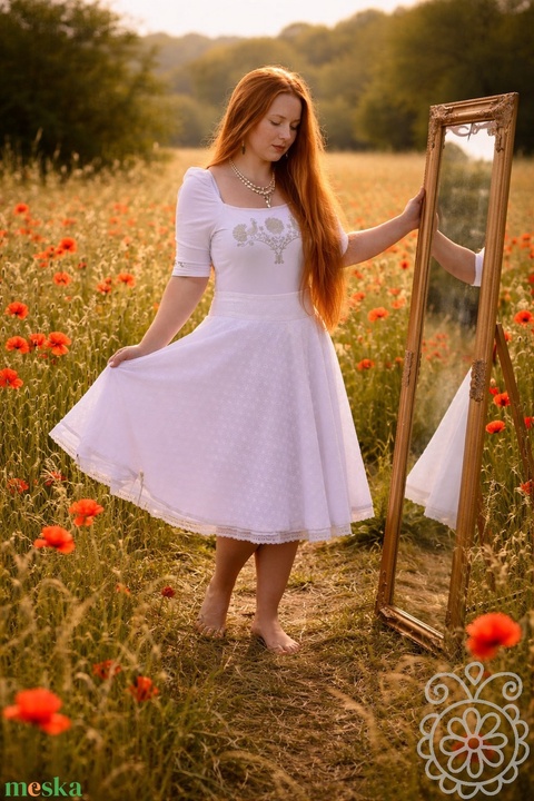 Madeira-géz, dupla rétegű körloknis szoknya – fehér