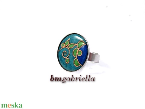 Gyűrű nemesacél foglalatban kerek tűzzománc betéttel