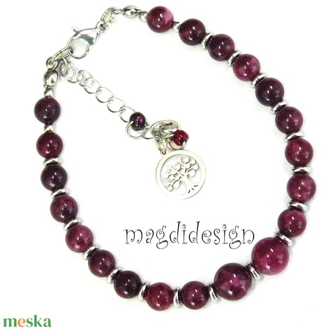 Rubin-agát színű természetes kő karkötő