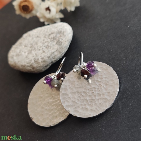 - Anyag/Összetevő nemesacél fülbevaló alap, alumínium lemez, ametiszt, gránát, labradorit