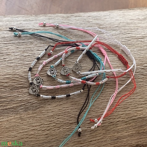 - Anyag/Összetevő pamutzsinór, rozsdamentesacél, üveggyöngy
