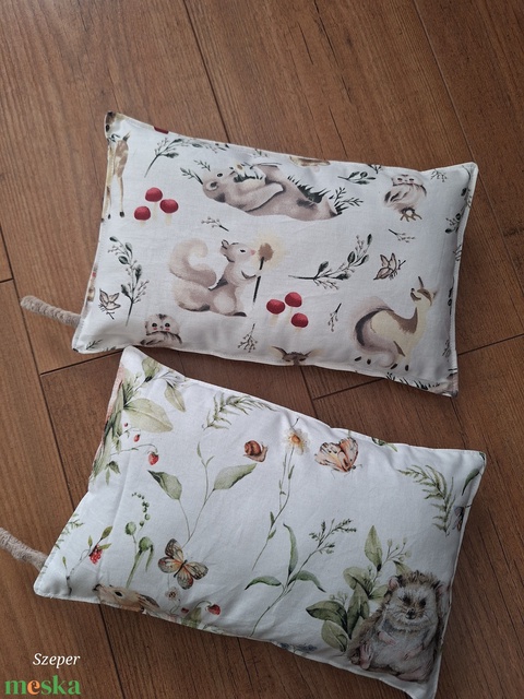 Pamutvászonból készült, vatelinnel töltött párnácskák 15*25 cm-es méretben, oldalán kis ciróka minkyvel.