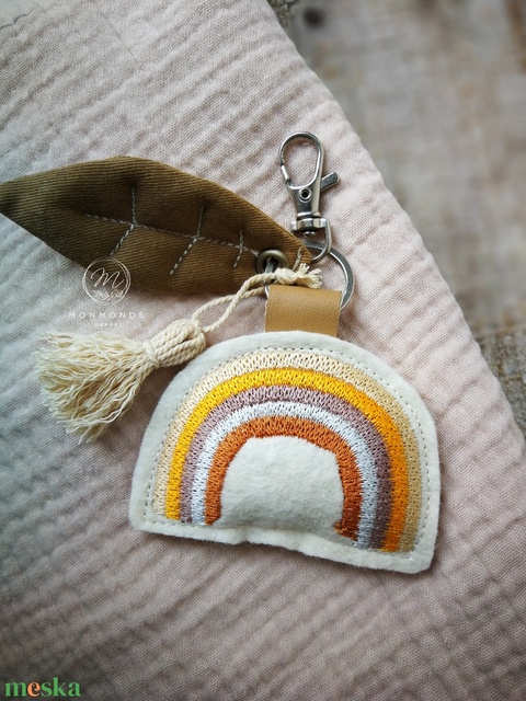 Hímzett szivárvány gyapjúfilc dekorációs kiegészítő, kulcstartó