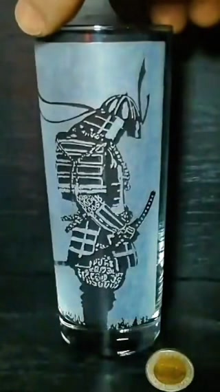 Szamuráj mintás kézzel gravírozott üveg pohár