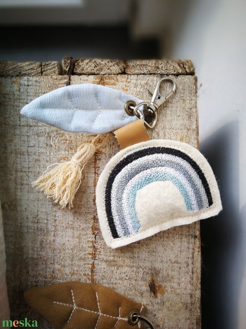 Hímzett szivárvány gyapjúfilc dekorációs kiegészítő, kulcstartó