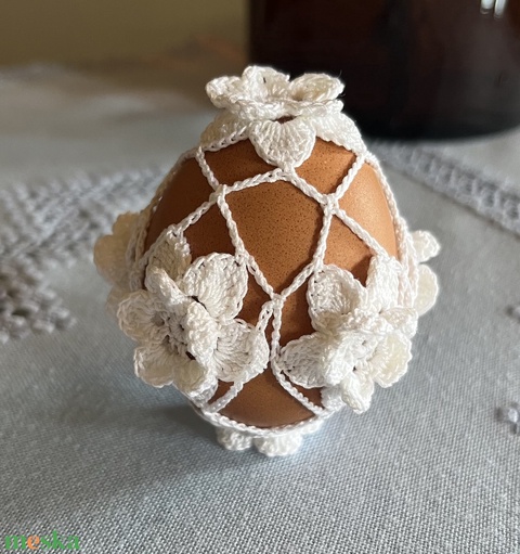 MINTA leírás - Horgolt csipke tojásdísz minta PDF – virágos húsvéti dekoráció, lépésről lépésre